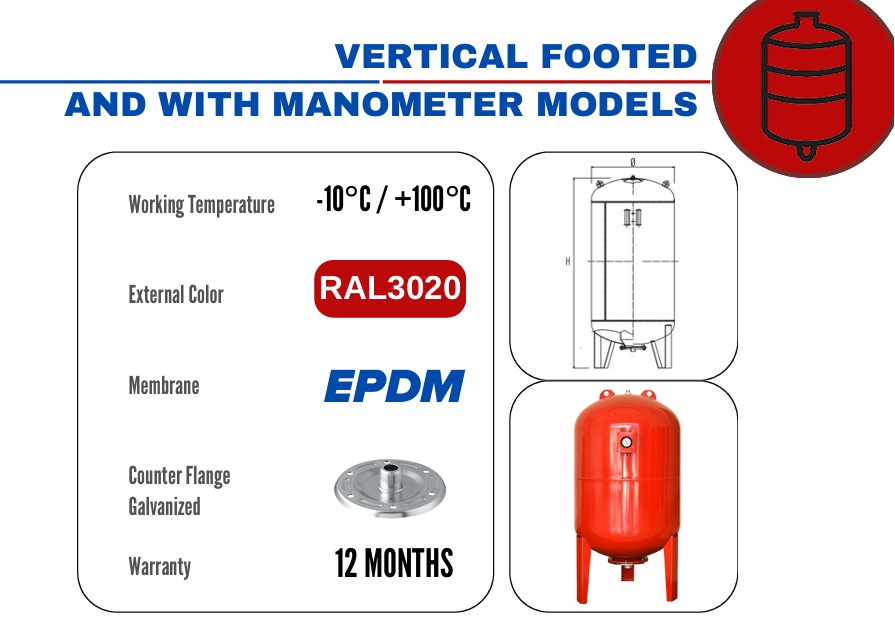 Chịu Áp Lực & Nhiệt Độ Cao: Có sẵn các phiên bản chịu áp suất lớn (10, 16, 25 bar) và màng chịu nhiệt độ cao đặc biệt (lên đến 130ºC ), phù hợp cho cả hệ thống nước nóng và năng lượng mặt trời.