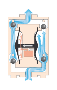 Bên cạnh đó, chu kỳ vận hành của bơm màng bao gồm hai bước chính là hút và xả. Cơ hoành tạo ra lực hút rất mạnh để di chuyển chất lỏng các chất lỏng bên trong bơm. Một cơ hoành khác truyền áp suất sinh ra để đẩy chất lỏng về phía cổng xả.