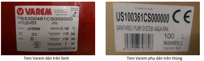 4/ Tem bình tích áp varem chính hãng được được gắn trên bình và trên vỏ bìa của bình