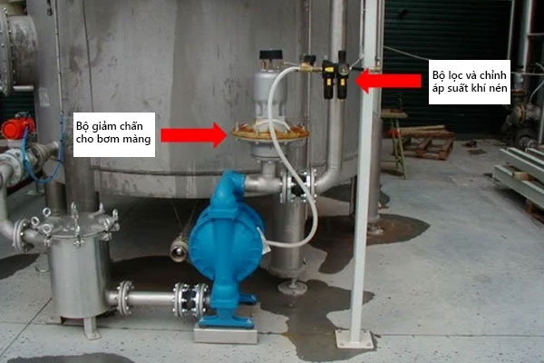 - Đảm bảo kết nối của đường ống ra/vào với thân bơm, và đường ống cấp khí nén không bị lỏng.