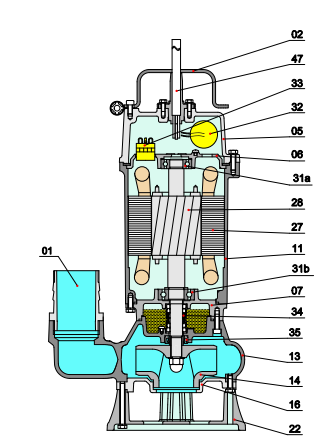 Bơm chìm nước thải Meudy B Series là loại máy bơm chìm được thiết kế với rãnh cánh bơm được phát triển đặc biệt cho máy bơm nước thải. Cánh bơm có đường rãnh rộng kéo dài từ cửa hút đến lối ra, giúp ngăn chặn sự tắc nghẽn bên trong do chất rắn hút từ đầu vào của bơm.