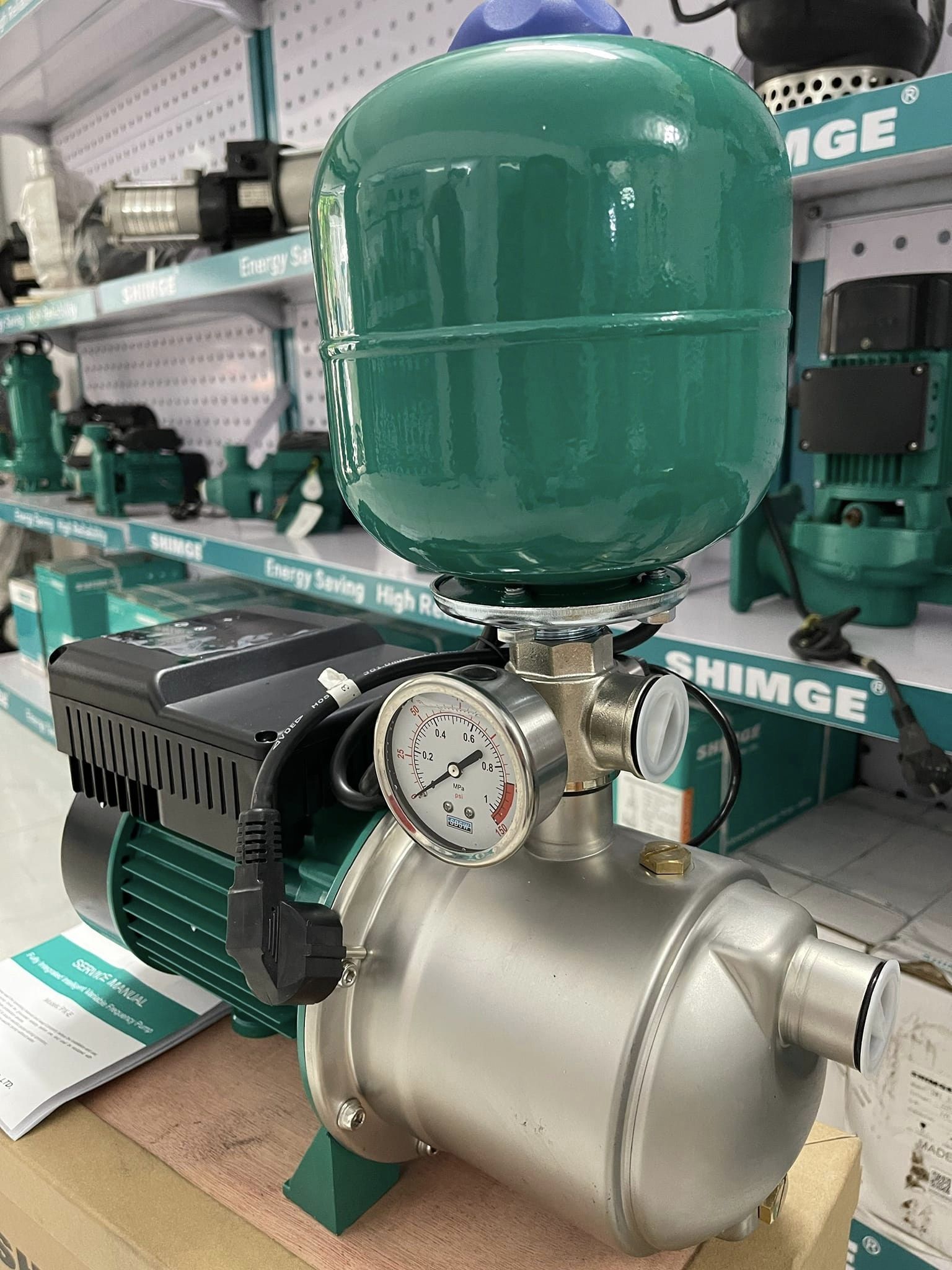 thương hiệu Shimge nổi tiếng từ Trung Quốc,giúp tăng áp mạnh mẽ hơn ngoài ra có tích hợp hệ biến tần thông minh giúp điều khiển dễ dàng.Hệ bơm Booster Shimge hiện nay được lắp đặt nhiều tại các hệ thống bơm tăng áp nhà cao tầng, bơm cấp nước cho hệ thống lọc RO công nghiệp, bơm cấp nước cho nồi hơi lò hơi, bơm cấp nước cho hệ thống giải nhiệt Chiller, bơm cấp nước cho hệ thống chữa cháy và lắp cho hệ bơm tưới tiêu…